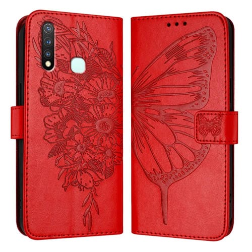 Para Vivo Y19/Y5S/U3/U20/Z5I Funda para Teléfono de Cuero con Mariposa En Relieve (Rojo)