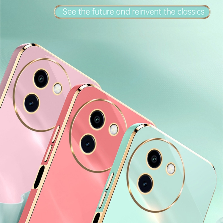 Para Vivo Y200I Xinli Caja de Teléfono de TPU con Borde Dorado y Revestimiento Recto 6D (Púrpura Cereza)