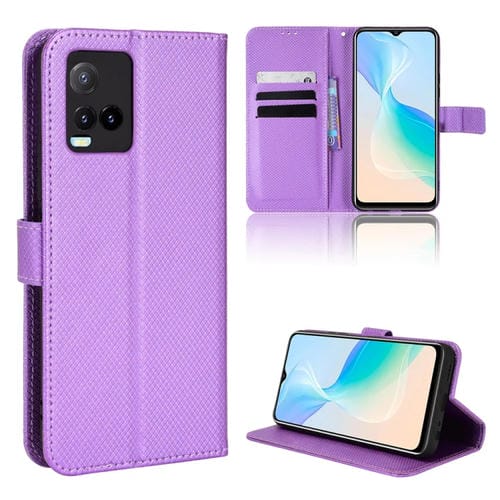 Para Vivo Y21 2021 / Y21S Funda de Cuero con Textura de Diamante para Teléfono (Púrpura)