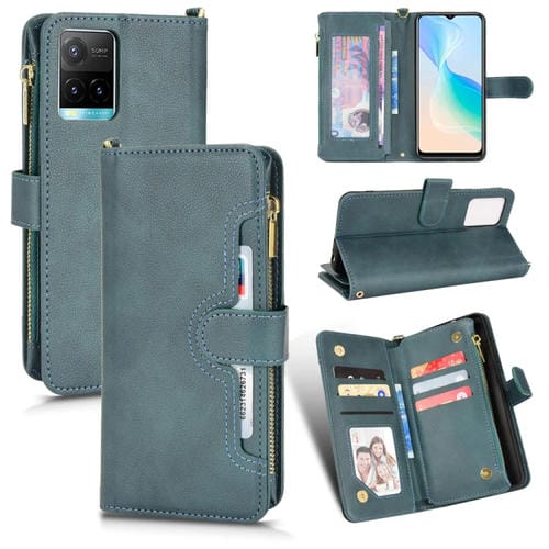 Para Vivo Y21 2021 / Y21S / Y33 Litchi Textura Cremallera Funda de Cuero para Teléfono (Verde)