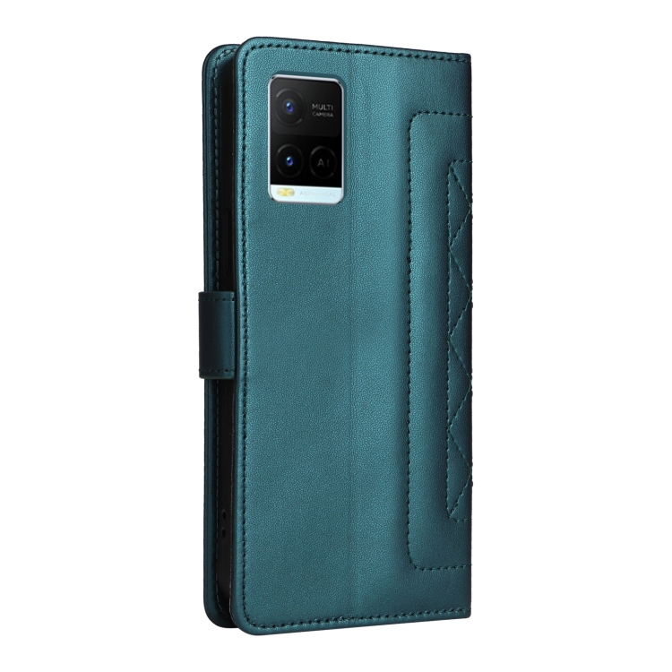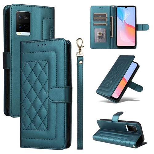 Para Vivo Y21 / Y33S Funda para Teléfono con Tapa de Cuero Diamond Lattice (Verde)
