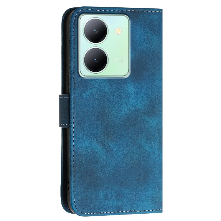 Para Vivo Y27 5G / Y36 4G India Yx0080 Funda de Cuero con Tapa y Patrón En Relieve de Mariposa y Cuadrícula con Cordón (Azul Oscuro)