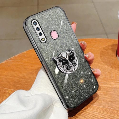 Para Vivo Y3 Funda para Teléfono de TPU con Soporte de Mariposa con Brillo Degradado Plateado (Negro)