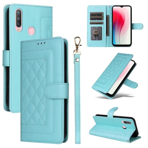 Para Vivo Y3 / Y17 Funda para Teléfono con Tapa de Cuero Diamond Lattice (Verde Menta)