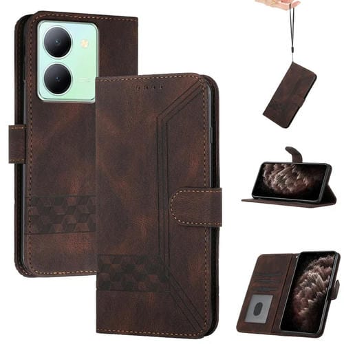 Para Vivo Y36 5G Global / Y36 4G Global Cubic Skin Feel Funda de Cuero con Tapa para Teléfono (Marrón)