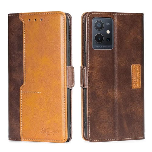 Para Vivo Y52T Caja de Teléfono de Cuero con Hebilla Lateral de Color de Contraste (Marrón Oscuro + Dorado)