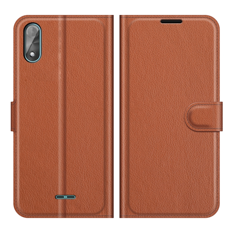 Para Wiko Y51 Litchi Texture Horizontal Flip Funda protectora con soporte y ranuras para tarjetas y billetera (marrón)