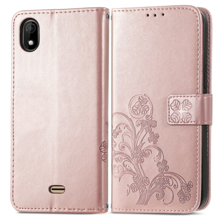 Funda Cuero Wiko Y61 Cierre Cuatro Hojas con Hebilla y Ranura Tarjetas (Oro Rosa)