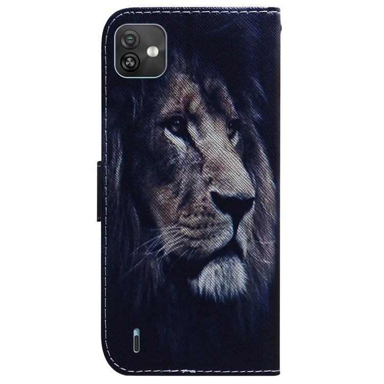 Funda para Wiko Y82 Colored Drawing de Cuero con Diseño León