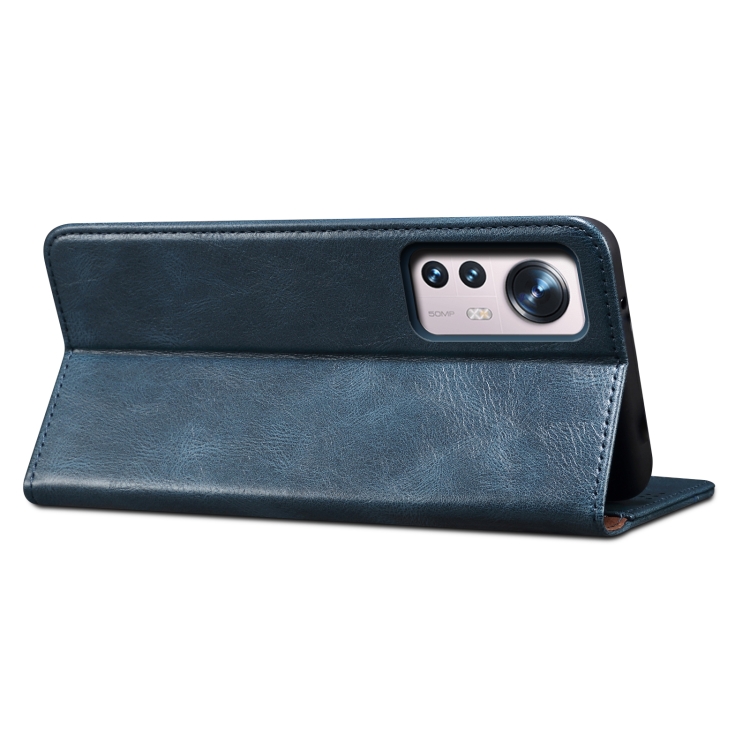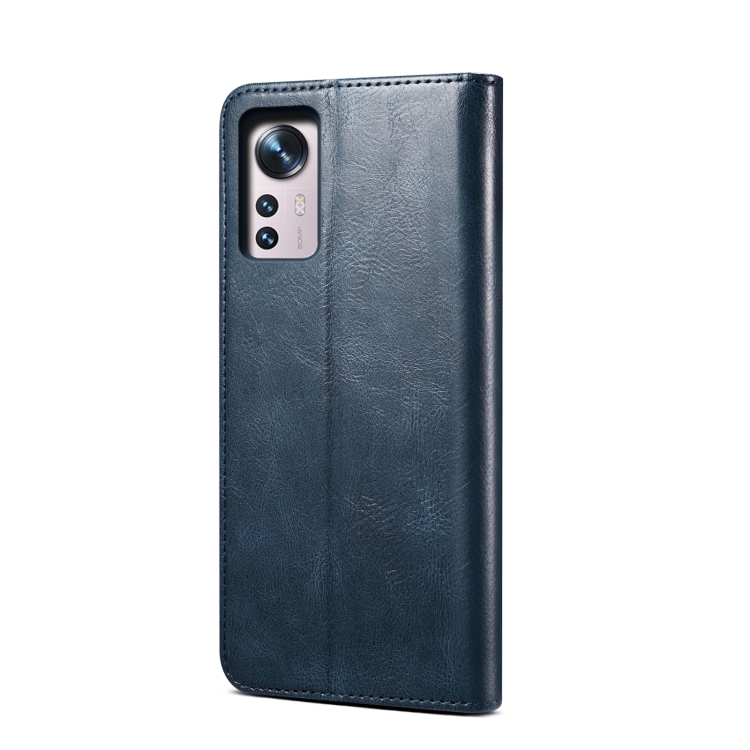 Para Xiaomi 12/12S Simple Wax Crazy Horse Texture Cuero Case (azul marino)
