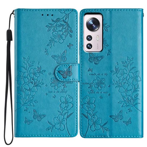 Para Xiaomi 12 Pro Funda de Cuero para Teléfono con Mariposas y Flores (Azul)