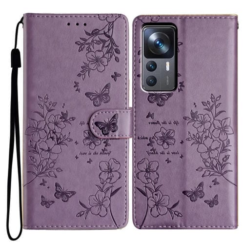 Para Xiaomi 12T / 12T Pro Funda de Cuero para Teléfono con Mariposas y Flores (Púrpura)