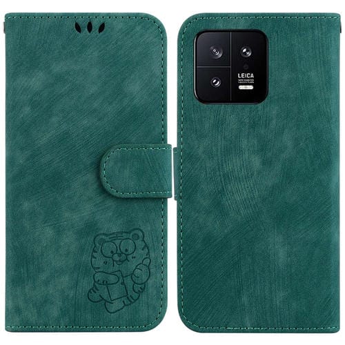 Para Xiaomi 13 5G Little Tiger Funda de Cuero En Relieve para Teléfono (Verde)