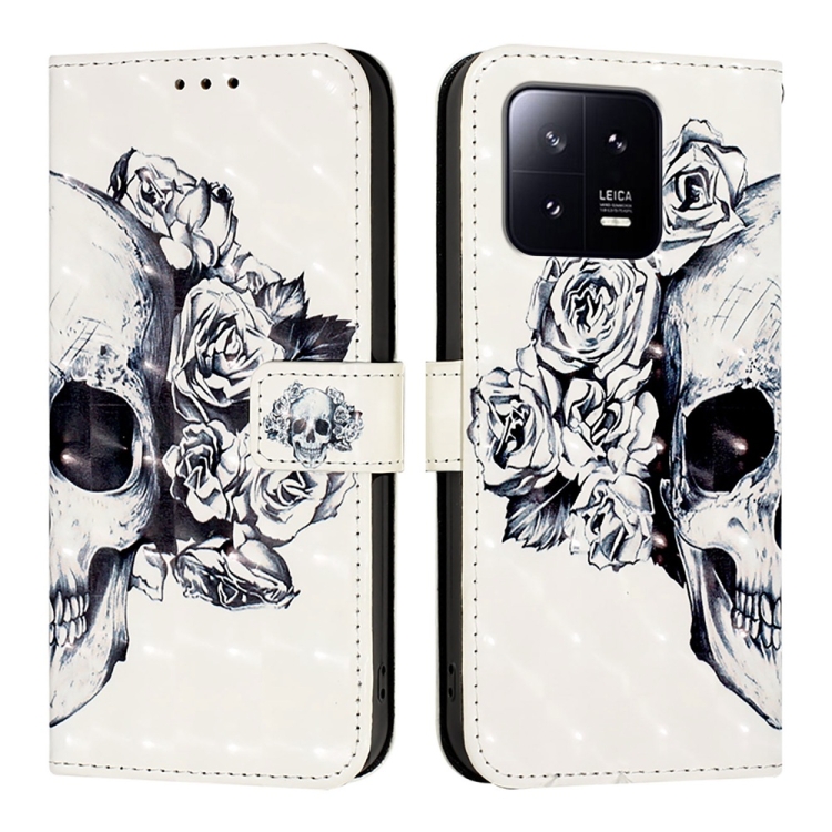 Para Xiaomi 13 Funda de Teléfono de Cuero con Tapa Horizontal con Pintura 3D (Calavera)