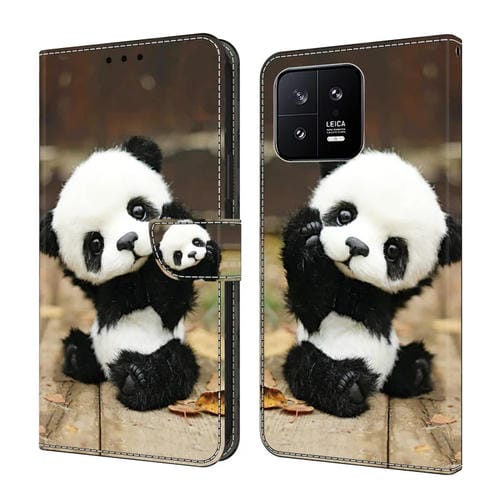 Para Xiaomi 13 Funda de Teléfono de Cuero Pintado con Cristales (Panda)