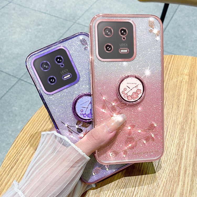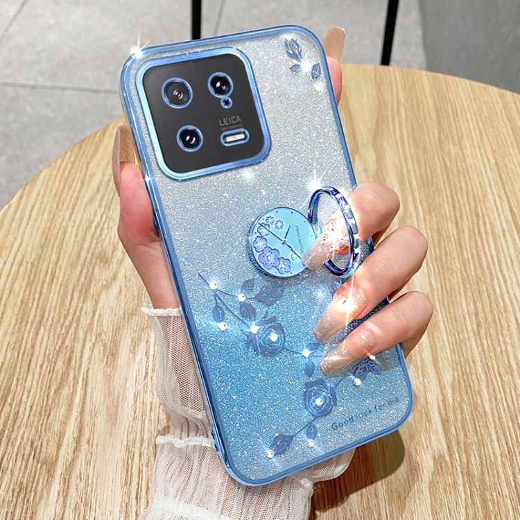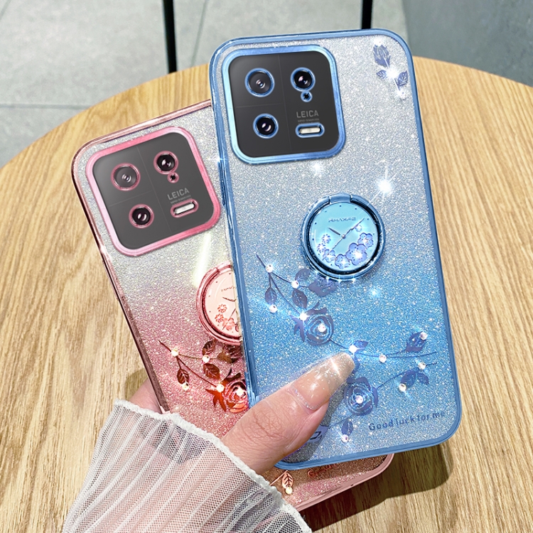 Para Xiaomi 13 Gradient Glitter Immortal Flower Ring Funda para Teléfono con Todo Incluido (Azul)