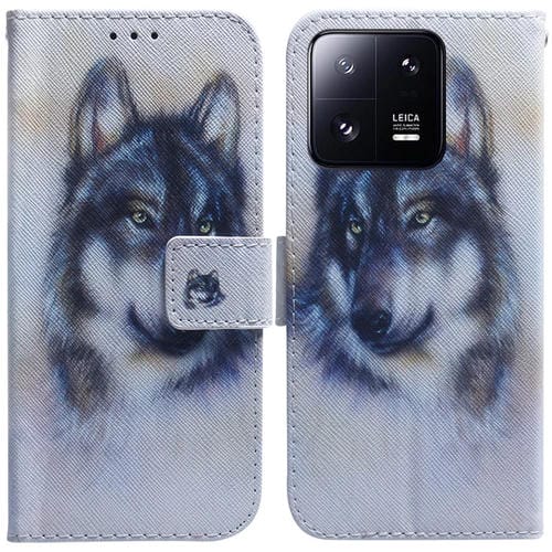 Para Xiaomi 13 Pro 5G Estuche de Teléfono de Cuero con Tapa de Dibujo Coloreado (Lobo Blanco)
