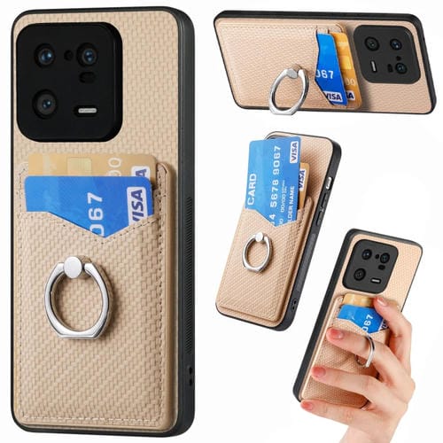 Para Xiaomi 13 Pro Carbon Fiber Card Wallet Ring Holder Phone Case (Caqui)