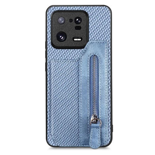 Para Xiaomi 13 Pro Carbon Fiber Flip Zipper Wallet Phone Case (Azul)