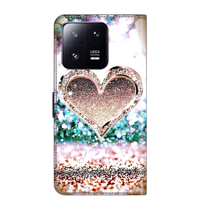 Para Xiaomi 13 Pro Crystal 3D Funda Protectora de Cuero para Teléfono a Prueba de Golpes (Corazón de Diamante Rosa)