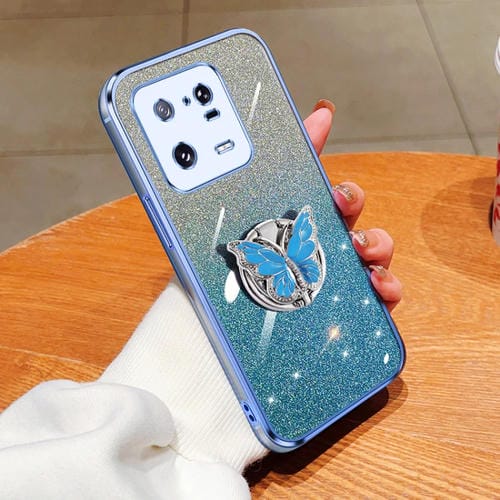 Para Xiaomi 13 Pro Estuche para Teléfono de TPU con Soporte de Mariposa con Brillo Degradado Plateado (Azul Sierra)