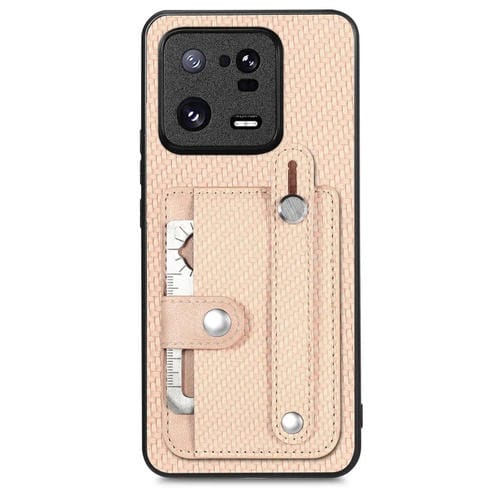 Para Xiaomi 13 Pro Wristband Kickstand Wallet Back Phone Case con Tool Knife (Khaki)
