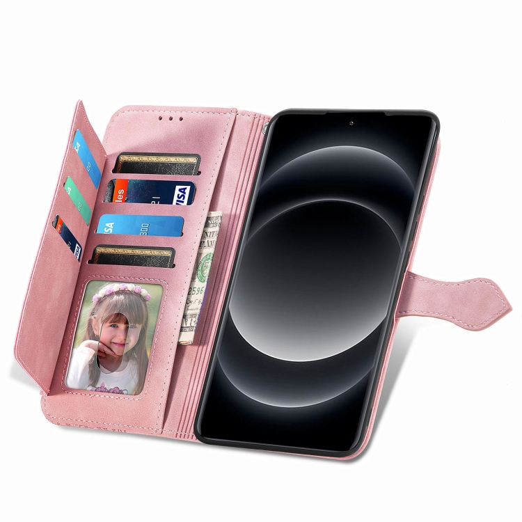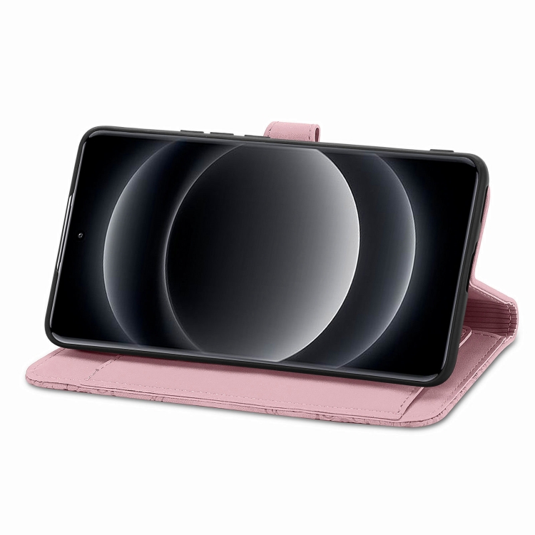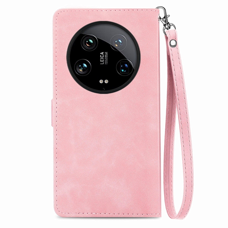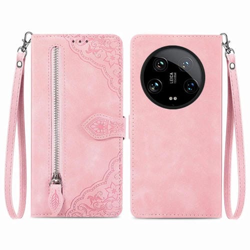 Para Xiaomi 14 Funda De Cuero Con Cremallera Y Flores En Relieve Ultra (Rosa)