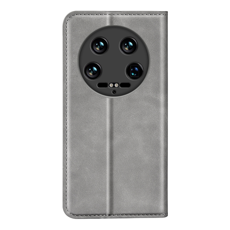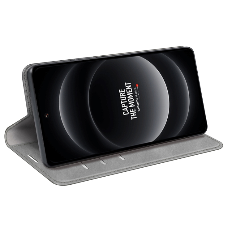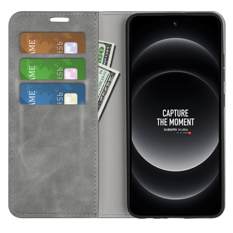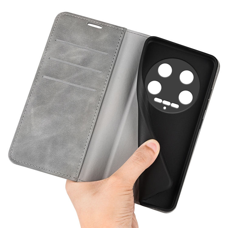 Para Xiaomi 14 Funda De Teléfono De Cuero Con Succión Magnética De Piel Ultra Retro (Gris)