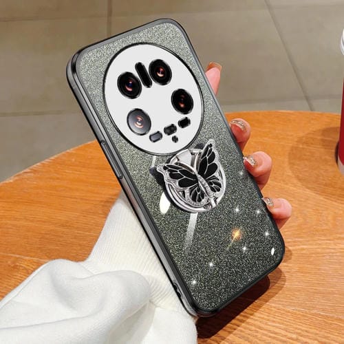 Para Xiaomi 14 Funda Para Teléfono De Tpu Con Soporte De Mariposa Con Brillo Degradado Ultra Plateado (Negro)