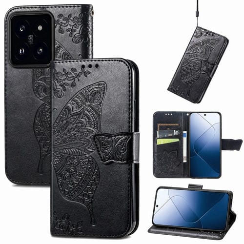 Para Xiaomi 14 Pro Butterfly Love Flower Funda De Cuero Para Teléfono En Relieve (Negro)