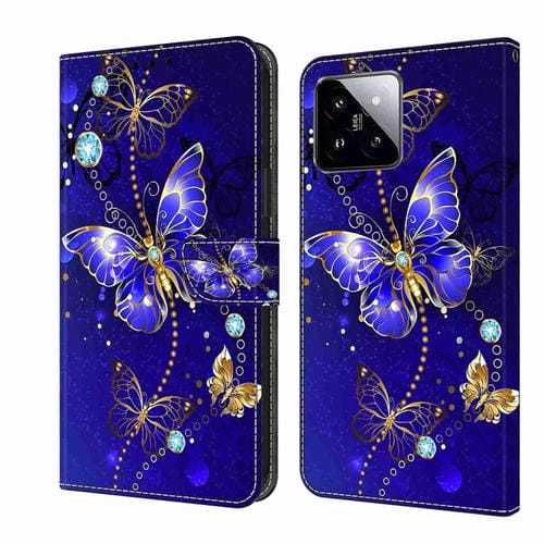 Para Xiaomi 14 Pro Crystal 3D Funda Protectora De Cuero Para Teléfono A Prueba De Golpes (Mariposa De Diamante)