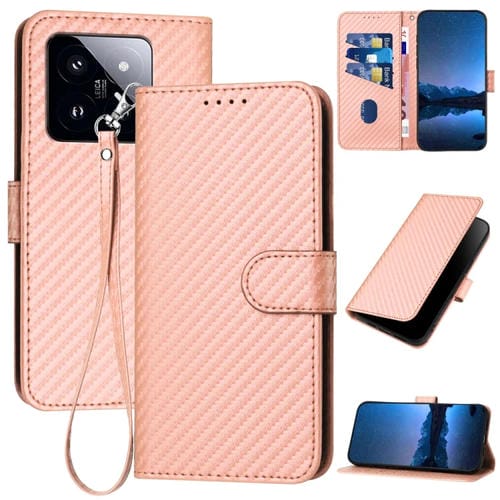 Para Xiaomi 14 Pro Yx0070 Funda De Cuero Con Hebilla De Fibra De Carbono Y Cordón (Rosa)