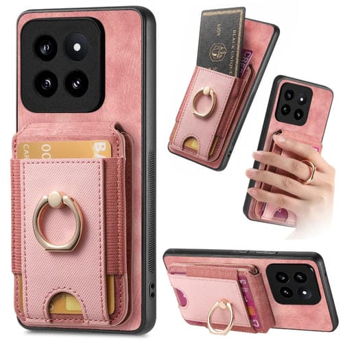 Para Xiaomi 14 Retro Splitable Magnetic Stand Card Bag Funda De Cuero Para Teléfono (Rosa)