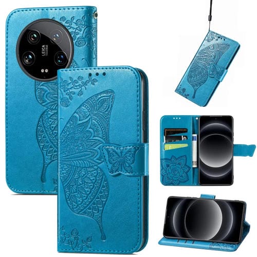 Para Xiaomi 14 Ultra Butterfly Love Flower Funda De Cuero Para Teléfono En Relieve (Azul)
