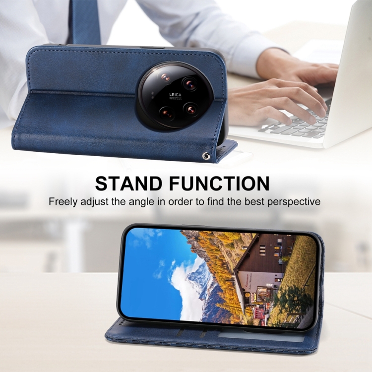 Para Xiaomi 14 Ultra Cubic Grid Calf Texture Funda De Teléfono De Cuero Magnético (Azul)