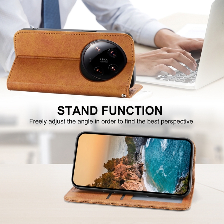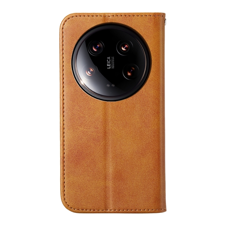 Para Xiaomi 14 Ultra Cubic Grid Calf Texture Funda Para Teléfono De Cuero Magnético (Amarillo)