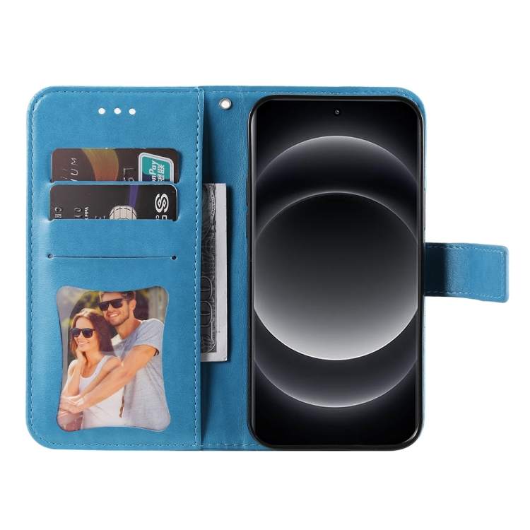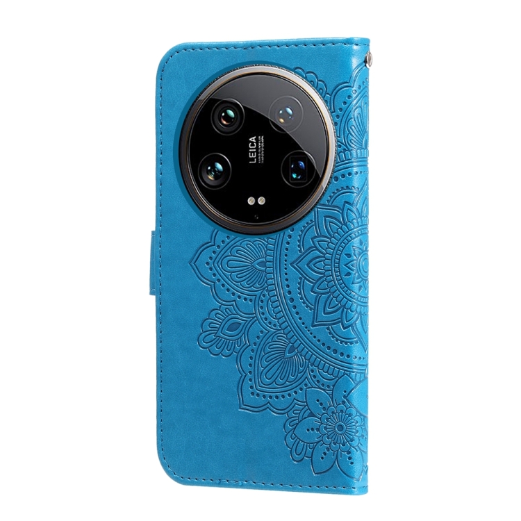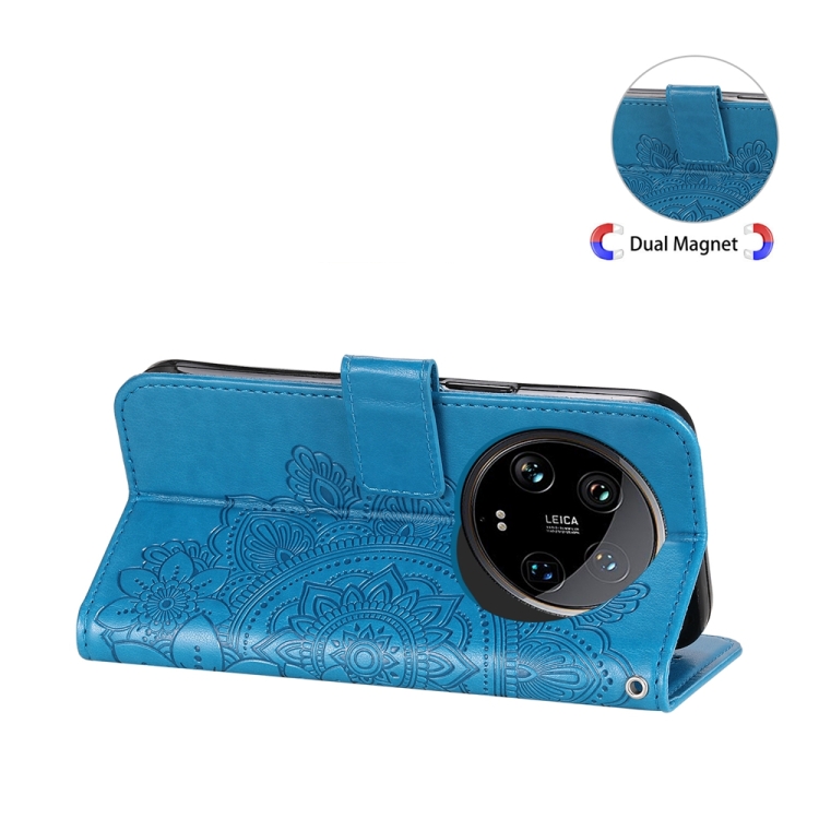 Para Xiaomi 14 Ultra Funda De Cuero Con Estampado De Flores De 7 Pétalos (Azul)
