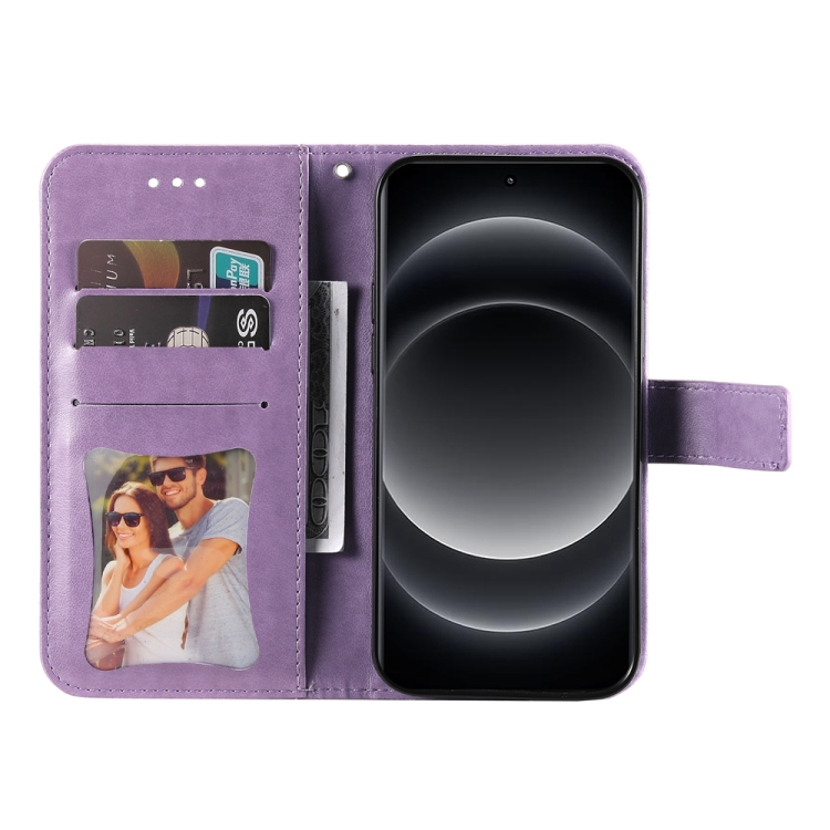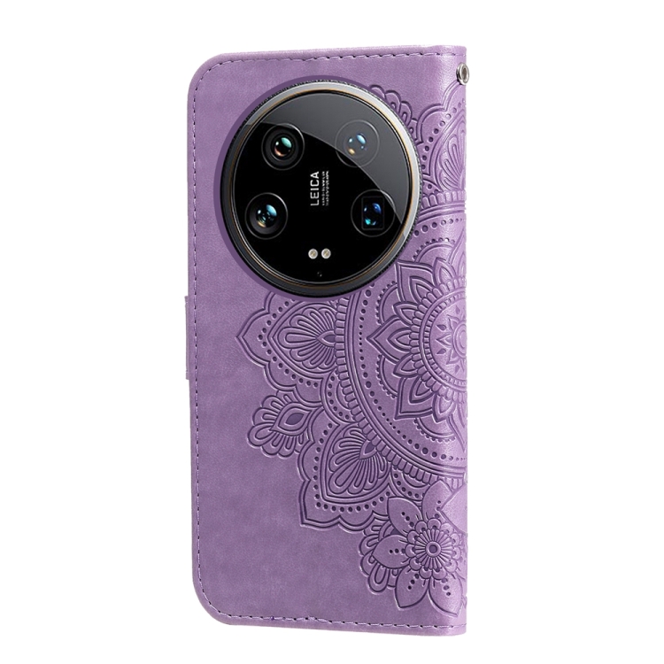 Para Xiaomi 14 Ultra Funda De Cuero Con Estampado De Flores De 7 Pétalos (Púrpura Claro)