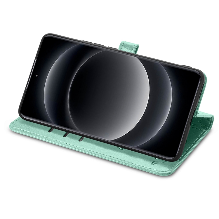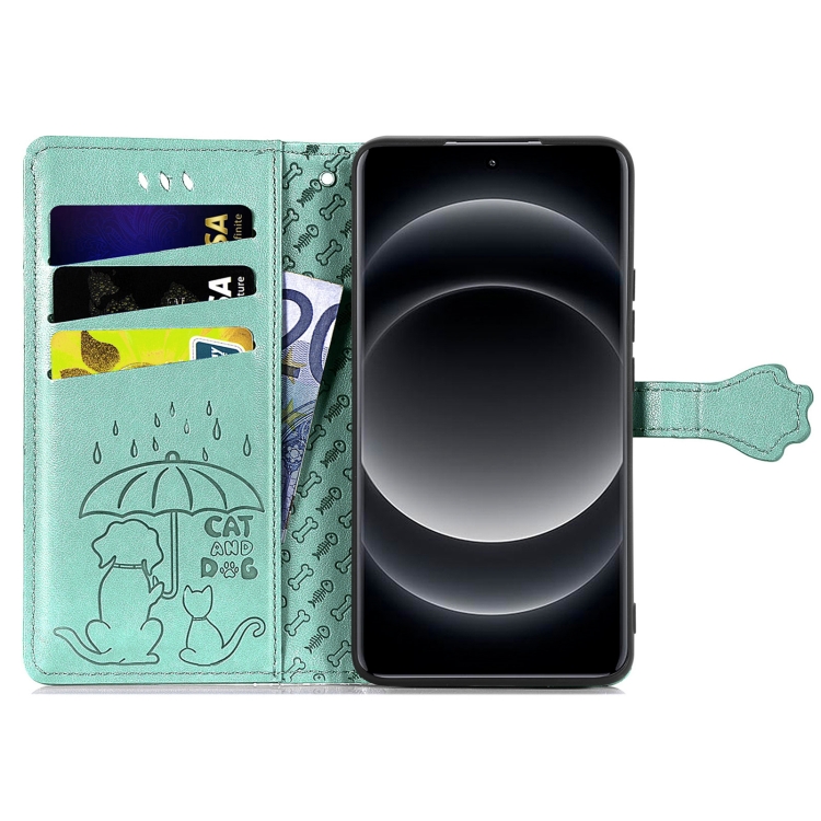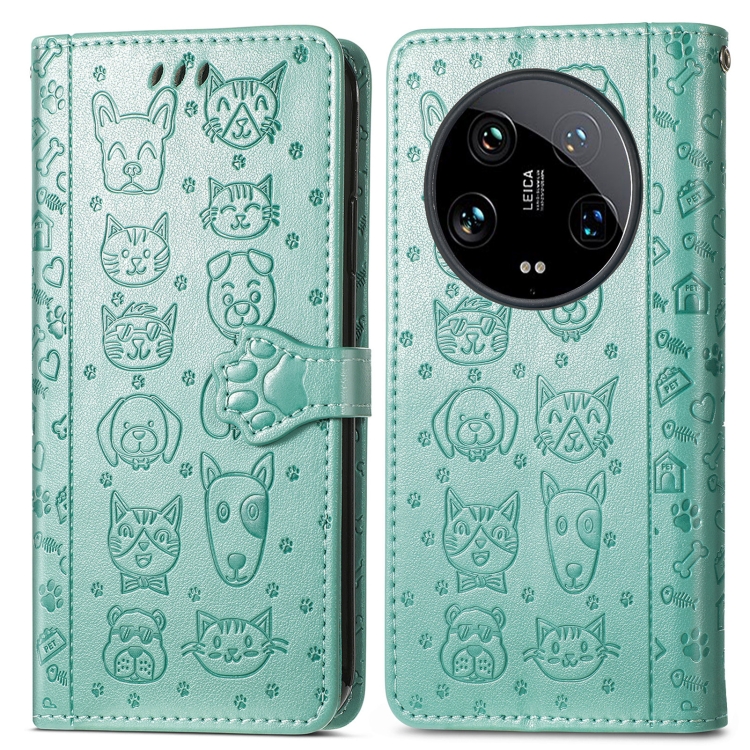 Para Xiaomi 14 Ultra Funda De Cuero Con Relieve Para Gatos Y Perros (Verde)
