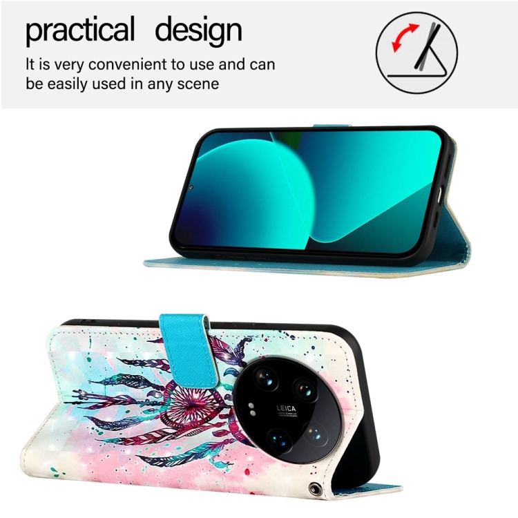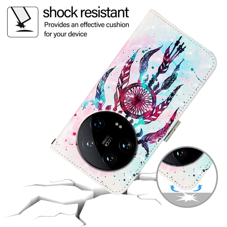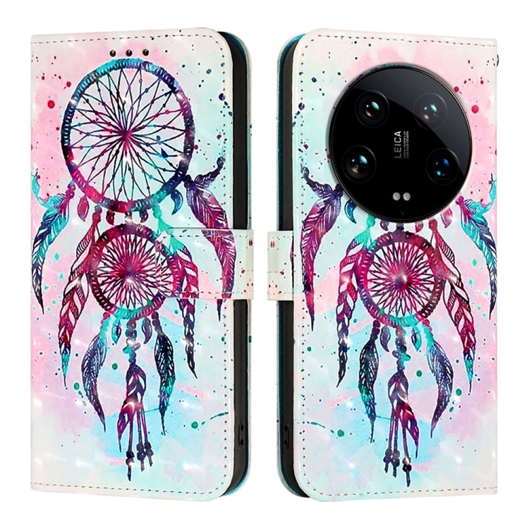 Para Xiaomi 14 Ultra Funda De Teléfono De Cuero Con Tapa Horizontal Con Pintura 3D (Campanas De Viento Con Forma De Gota De Color)