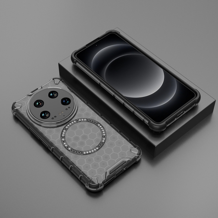 Para Xiaomi 14 Ultra Honeycomb Funda Para Teléfono Con Anillo Magnético A Prueba De Golpes (Negro)