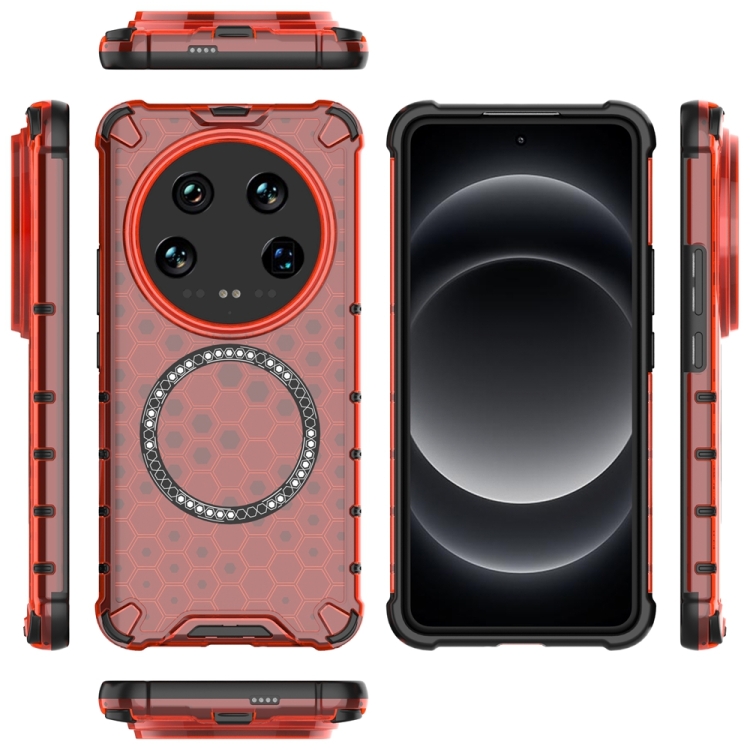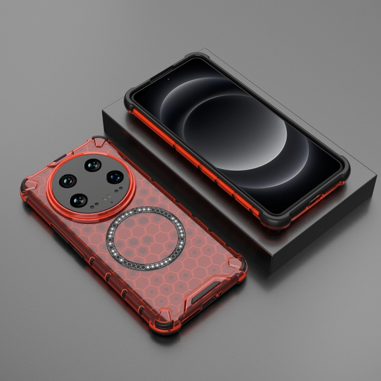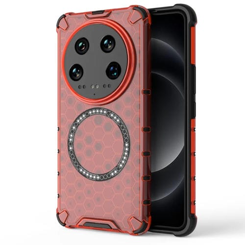 Para Xiaomi 14 Ultra Honeycomb Funda Para Teléfono Con Anillo Magnético A Prueba De Golpes (Rojo)
