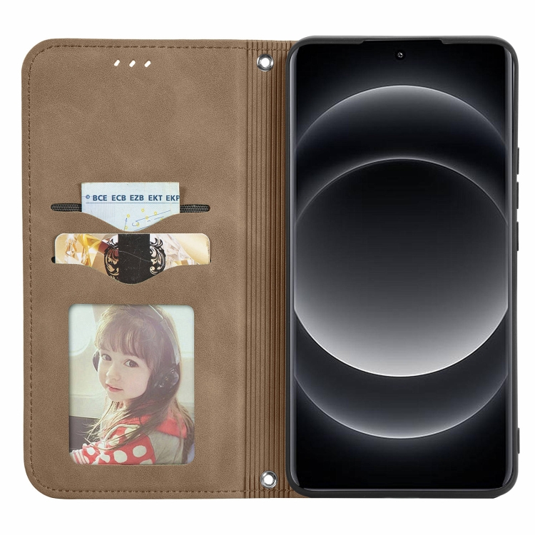 Para Xiaomi 14 Ultra Retro Skin Feel Funda De Teléfono De Cuero Con Tapa Magnética (Marrón)
