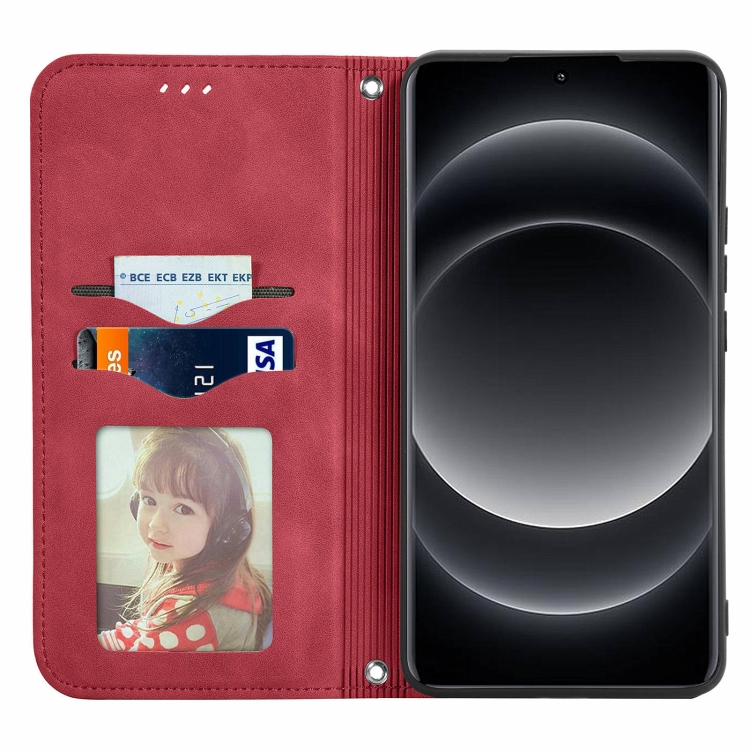Para Xiaomi 14 Ultra Retro Skin Feel Funda De Teléfono De Cuero Con Tapa Magnética (Rojo)