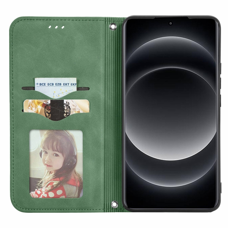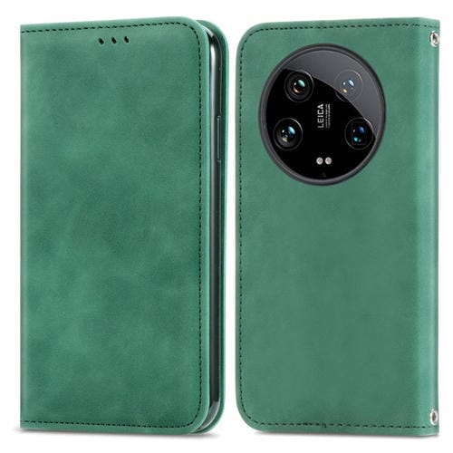 Para Xiaomi 14 Ultra Retro Skin Feel Funda De Teléfono De Cuero Con Tapa Magnética (Verde)
