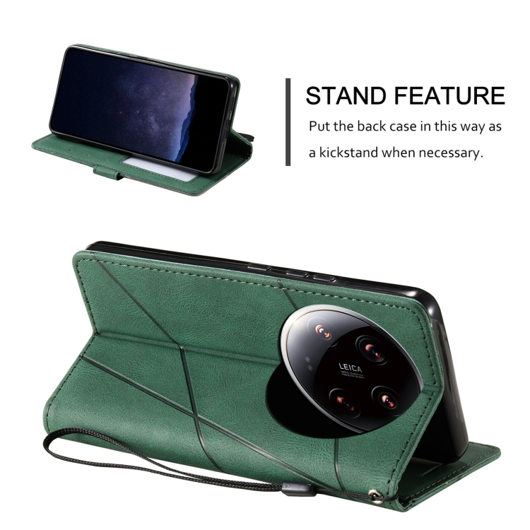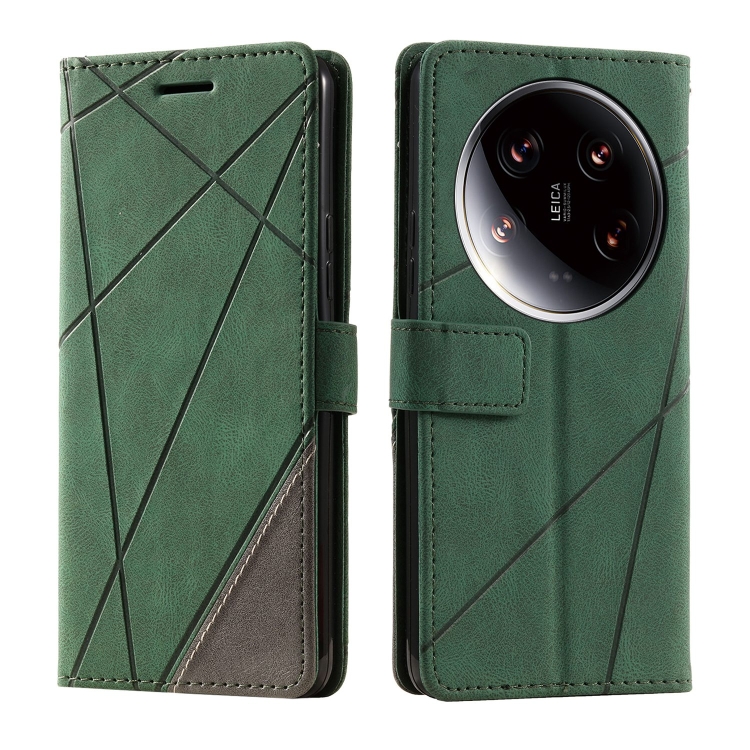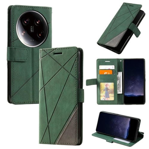Para Xiaomi 14 Ultra Skin Feel Empalme Funda De Cuero Para Teléfono (Verde)