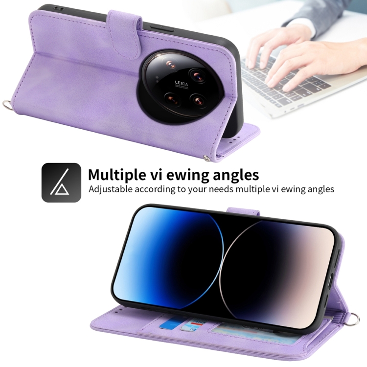 Para Xiaomi 14 Ultra Skin-Feel Flowers Funda De Cuero Para Teléfono Con Billetera En Relieve (Púrpura)