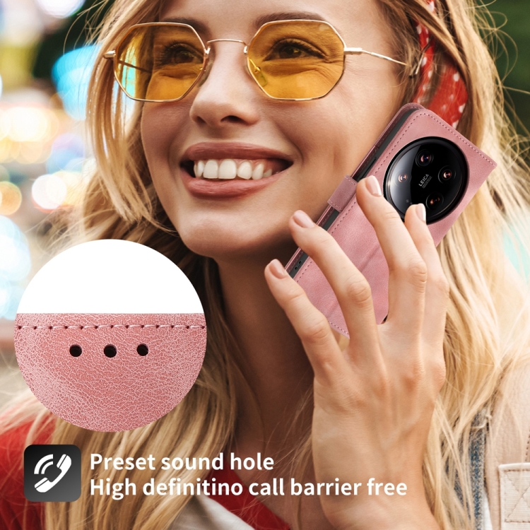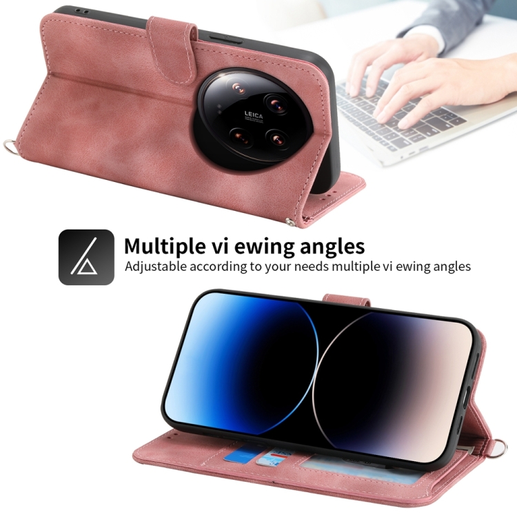 Para Xiaomi 14 Ultra Skin-Feel Flowers Funda Para Teléfono De Cuero Con Billetera En Relieve (Rosa)