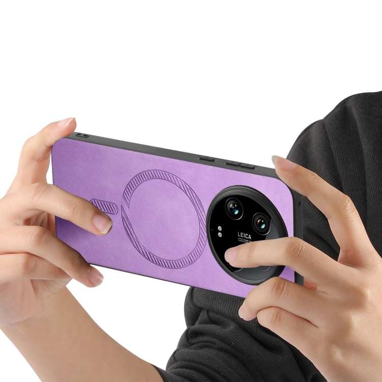 Para Xiaomi 14 Ultra Solid Color Retro Magsafe Pu Funda Para Teléfono Con Contraportada (Púrpura)