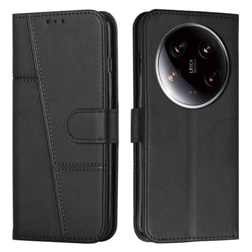 Para Xiaomi 14 Ultra Stitching Becerro Textura Hebilla Funda De Cuero Para Teléfono (Negro)